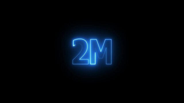 Neon 2m million neon glowing text animation 2M text animation on black background.4K VIDEO