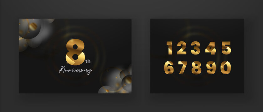 Set of golden number anniversary celebration banner on dark background with editable numbering