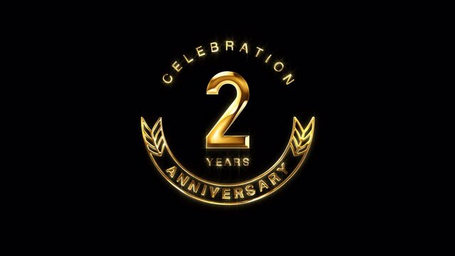2nd Golden Anniversary Celebration. Happy 2 Years Anniversary Animation in Gold Color on the Transparent Background, Alpha Channel. Great for greetings, celebrations, events, and gifts.