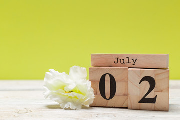 2 july wooden, square calendar. business trip or holiday planning background