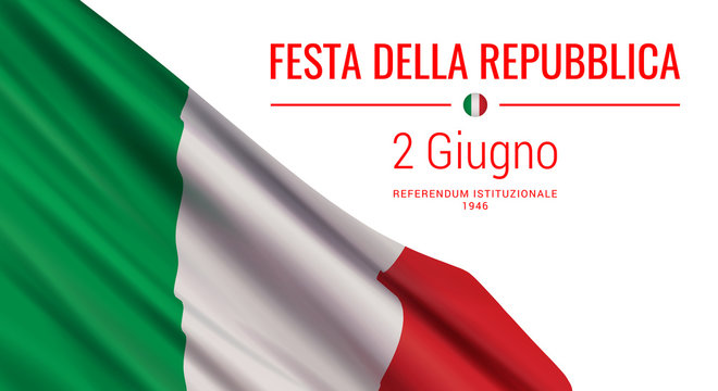 Vector illustration with a realistic flag of Italy, and text isolated on white background. Translation: "Republic Day. June 2. institutional referendum. 1946.". Italian National Day greeting card.