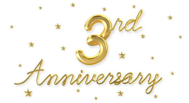 3d golden 3 years anniversary celebration with star background. 3d illustration.