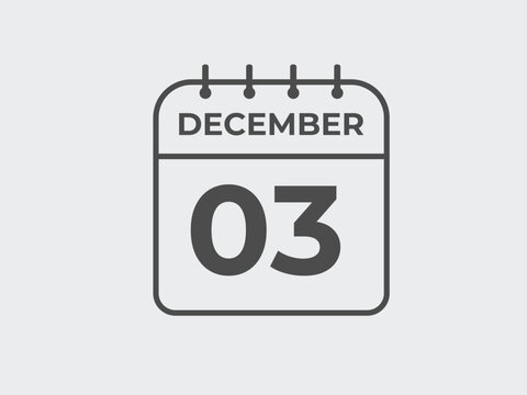 December 3 calendar reminder. 3 December daily calendar icon template. Calendar 3 December icon Design template. Vector illustration