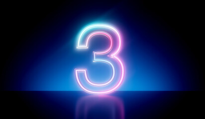Number 3 neon glowing futuristic tube light. 3D Rendering