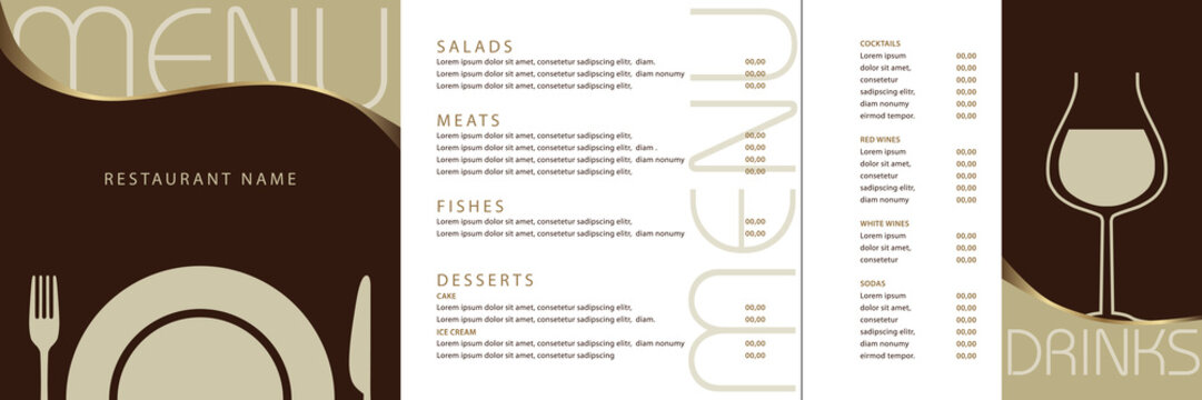 Carte en 3 parties pour un menu de restaurant gastronomique avec un graphisme simple et clair.