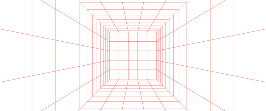 room interior perspective grid. red lines 3d view illustration