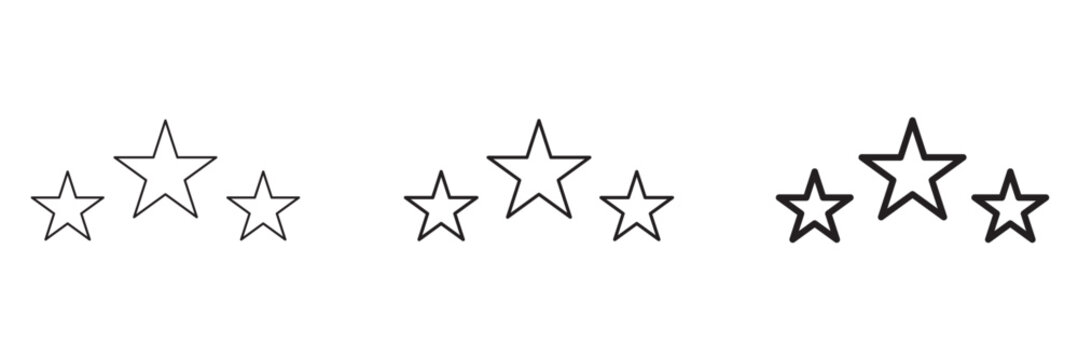 Graphic elements of three golden stars – One star in a 2D plane and two stars with 3D effects
