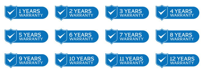 Vector of warranty shield badge label icon - Reliable Guarantee Labels for Products and Services. Warranty labels for 1 to 12 years, Year warranty Banner Label Sign Vector Design