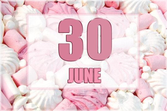 june 30th. Day 30 of month, handmade wood calendar  on modern color background. summer month, day of the year concept