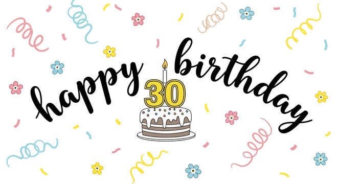 Happy 30th Birthday Graphic with Cake and Confetti