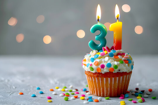 Birthday cupcake with number thirty-one candle