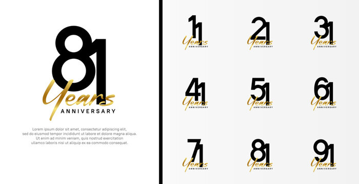 Set of Anniversary Logotype with gold swoosh, black color can be use for special day celebration