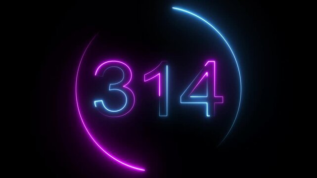 A dynamic circular animation, and glowing neon number 314 animation . on a black background. and creating a stunning video.4k video