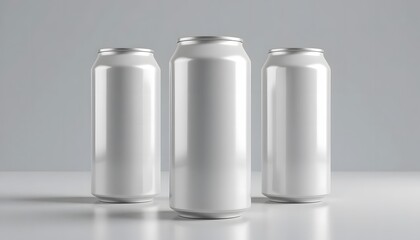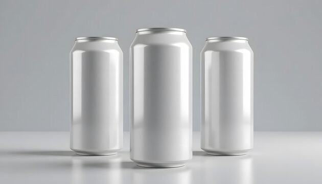 "12 oz / 330 ml Aluminum Can Mockup – Three Cans with Blank Labels, 3D Illustration".  12 oz can mockup