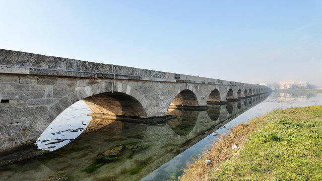 This bridge located in Silivri, Istanbul, Turkey was built by Mimar Sinan. It was built for Suleiman the Magnificent. It is 333 meters long.