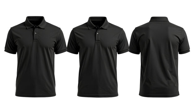black Polo Shirt Mockup from Front, Back, Side, and 34 Views, Isolated on Transparent Background PNG