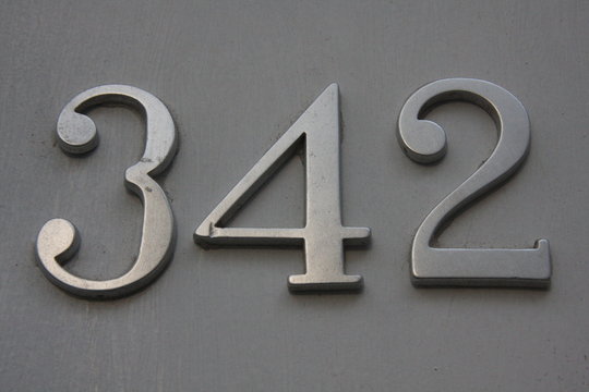 3D 342 number font alphabet. White 3D Number 342 with yellow background