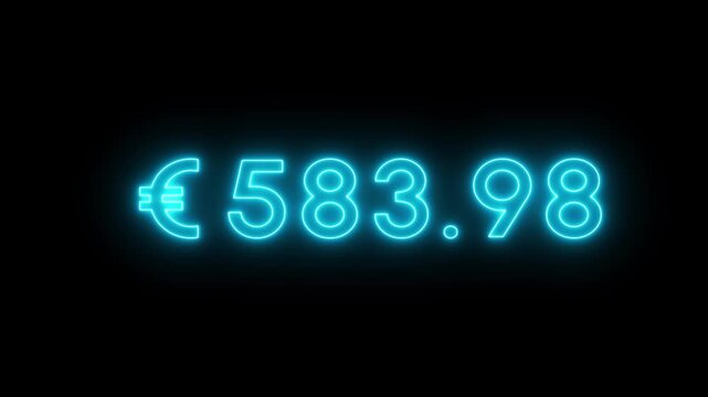 Glowing neon dollar animation. Count-Up from neon text 0 to 3500 with Clean Digital Design. business number.  blue and pink color . on black background....