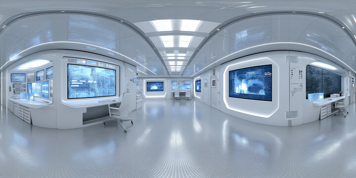 full 360 spherical panorama view of futuristic sci-fi environment with neon lights 3d render illustration hdr hdri vr design