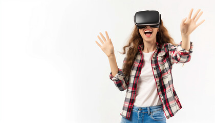 Modern Technology: Woman Experiencing Virtual Reality with Headset
