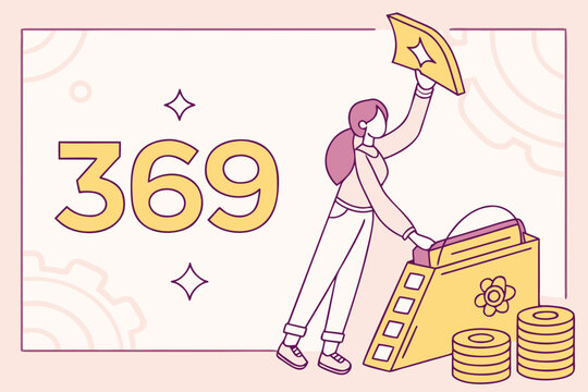 369 number vector font alphabet. Number 369 with decorative element stock vector