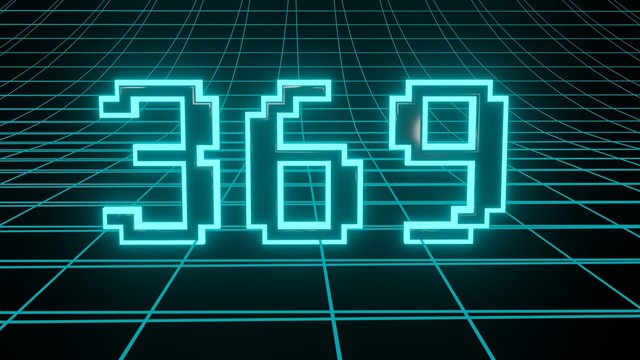 Number 369 in neon glow cyan on grid background, isolated number 3d render
