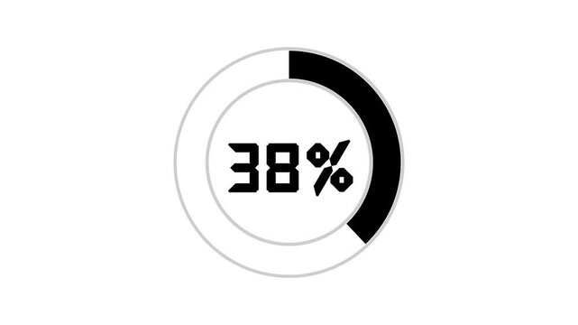 38 Percent number circle pie chart animation. A modern spinning percentage circle pie chart illustration showcasing growth, performance, and statistical analysis. Ideal for business, finance,