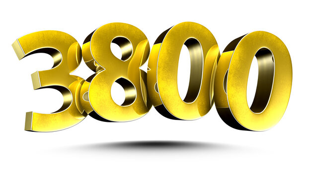 3D illustration Numbers 3800 Gold isolated on a white background.(with Clipping Path)