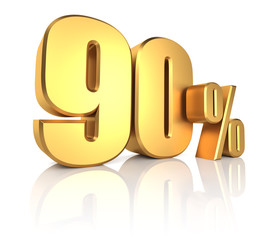 90 percentage sign isolated on white background. 90 percent off 3d. 90 percent sign. 3D rendering.