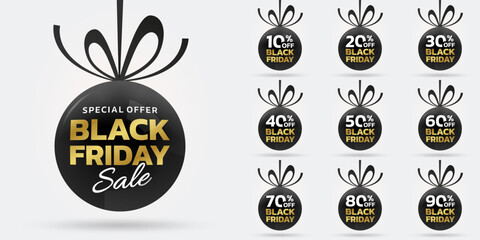 Black friday sale promotion with red ribbon and discount