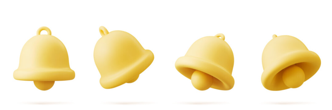 3d notification bell icon set isolated on white background. Realistic vector icon yellow ringing bell.