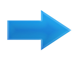 A glossy blue arrow pointing left, symbolizing direction or navigation in a clean, modern design.