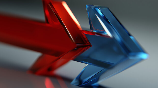 reprisal. A sharp red arrow deflecting a blue arrow on a neutral background. event key visuals, club posters, designed for fitness apps and gym onboarding.
