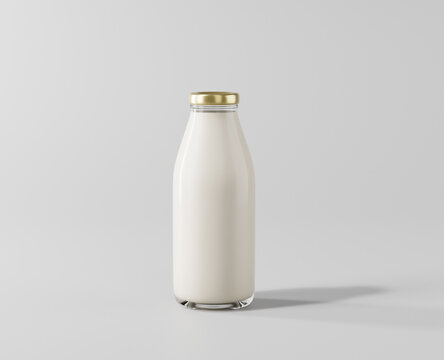 Milk tea in a clear glass bottle, a glass bottle of milk mockup, 3d rendering, 3d modeling