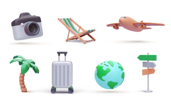 Set colorful photo camera with doodle elements in bright cartoon 3d style. Cute modern minimal vector illustration. Creative fashion composition.