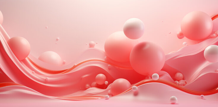 Pink abstract background with glass shining spheres. Backdrop design for product promotion. 3d rendering