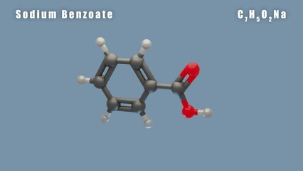 Sodium Benzoate of C7H5O2Na 3D Conformer animated render. Food additive E211.