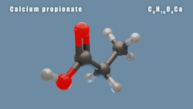 Calcium propionate molecule of C6H10O4Ca 3D Conformer render. Food additive E282