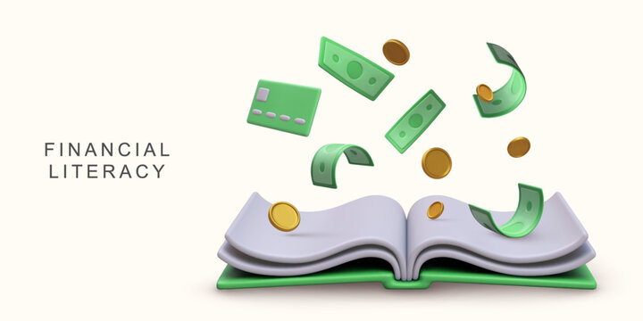 3d realistic concept Financial literacy on white background. Vector illustration.