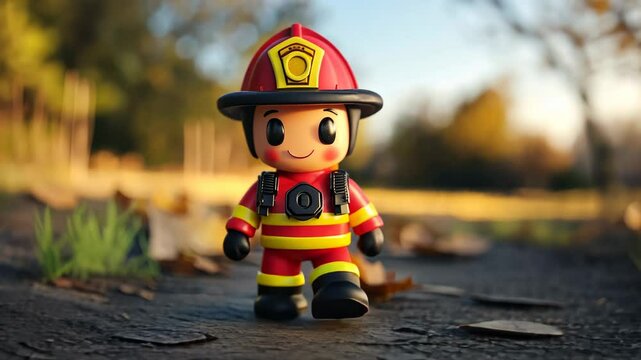 Playful Cartoon Fireman Boy Riding Bike with Helmet in Summer Park