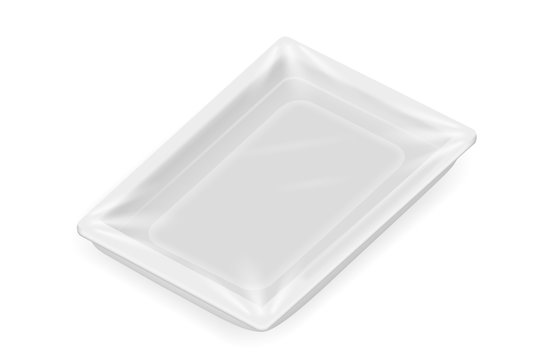 Empty white plastic tray. Isolated. Transparent background. 3d illustration.