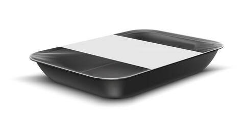 blank plastic food tray container with clear label template. realistic packaging mock up. 3d illustration
