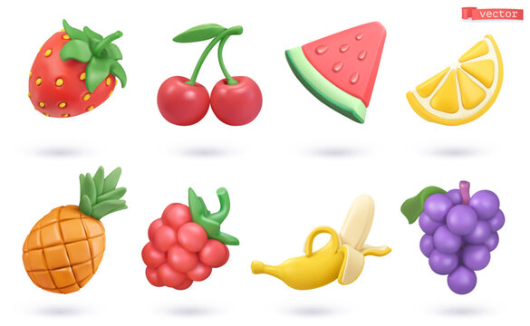assorted fruits set of 3D Icons – Glossy Minimal Emoji Style, Isolated PNG