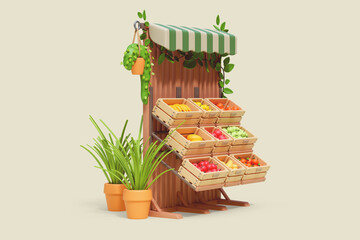 A variety of colorful fruits, rich in vitamins and nutrients, 3d rendering.