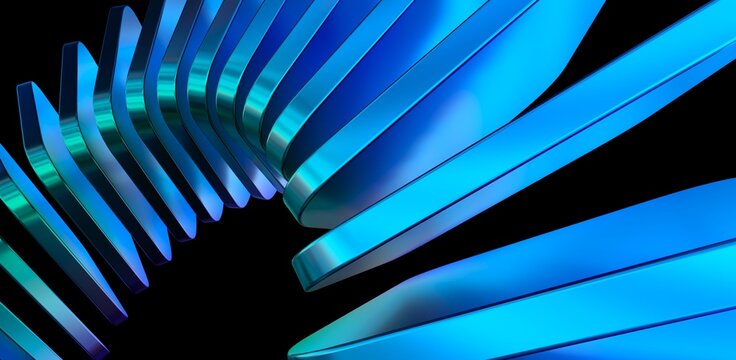 Ribbed neon glass 3d background with vertical striped texture, bright red blue gradient. Luminous transparent surface with lighting effect.