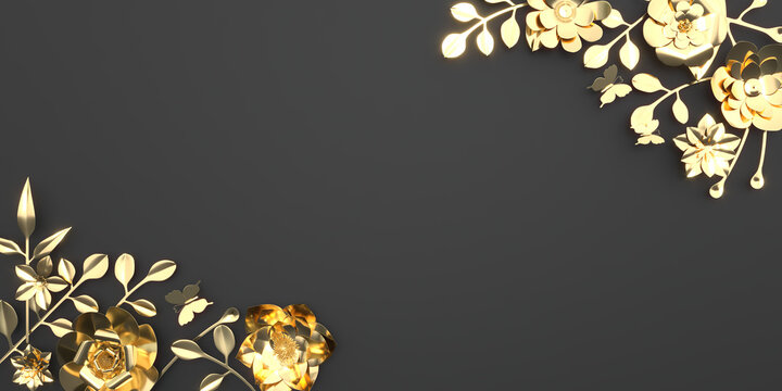 3d rendering. Luxurious golden sphere necklace on glod wall background.