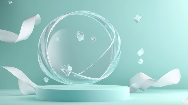 vector illustration display product background pastel abstract podium 3d circle geometric shape circle ribbon glod window white gray