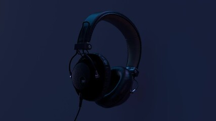 3d render of isolated headphones for listening  music, podcast, radio or music. Abstract background.