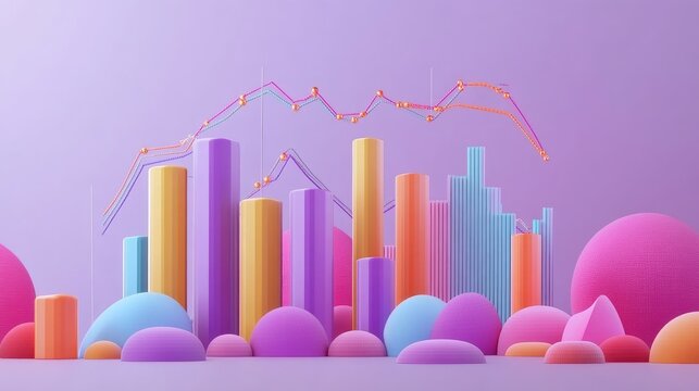 Colorful 3d model of a mountain range illustrating satellite data analysis with varied elevations in vibrant colors, set against a transparent background for presentations