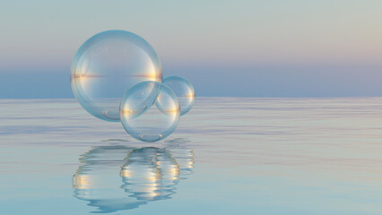 An abstract representation of wavy shapes in marine colors is presented as a 3D background